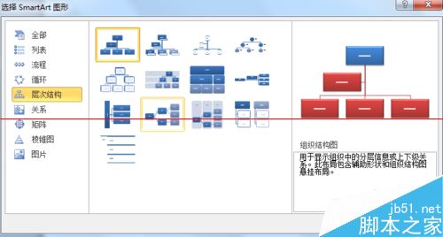 3、点击“层次结构”,根据需求,选择一种图形样式。确定。