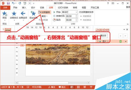 5、点击“动画窗格”,右侧弹出“动画窗格”窗口