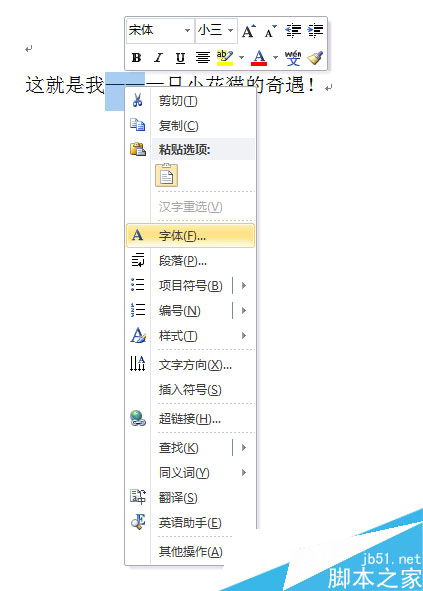 2:右击鼠标,选“字体”
