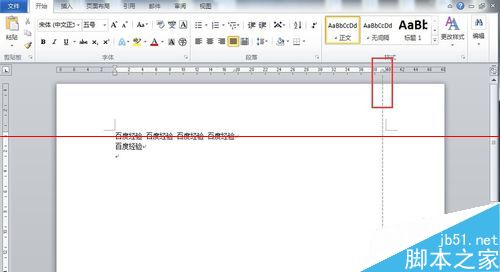 3、将鼠标定位到换行处,可以看到标尺上有一个小图标,如图所示: