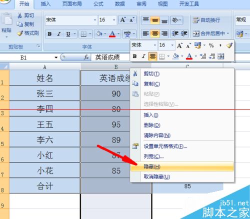 1、首先我们先打开我们需要删除数据的表格,假如我们隐藏的数据是B列,如图2,我们将B列选上,然后单击右键,在下拉的数据里单击“隐藏”按钮。