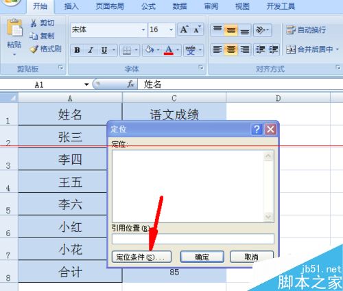 2、不需要删除的数据隐藏成功之后,我们将需要删除数据的区域选上,选上之后同时按下ctrl+G按钮,然后就会弹出如图对话框,此时我们选择对话框上的“定位条件”按钮。