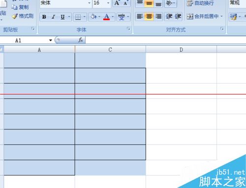 5、按下删除键之后会出现如图所示,此时我们可以看到单元格里的数据都被删除了。为了证明隐藏的数据有没有被删除,我们需要先取消隐藏。因为我们隐藏的是B列,所以我们将A列C列都选上。