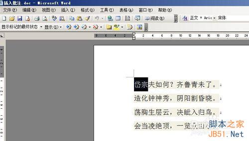 3、选中要注释的“岱宗”二字