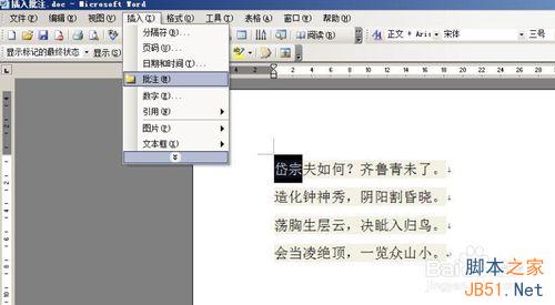 以上就是word2003如何在文档中插入批注方法介绍,希望能对大家有所帮助!