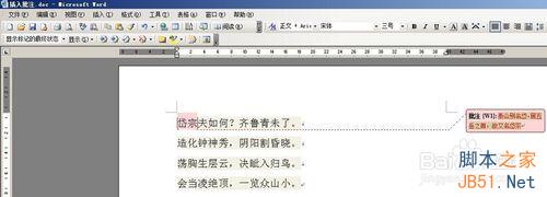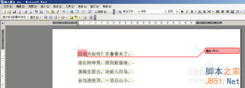 2、接下来对文档中的“岱宗”二字,进行批注