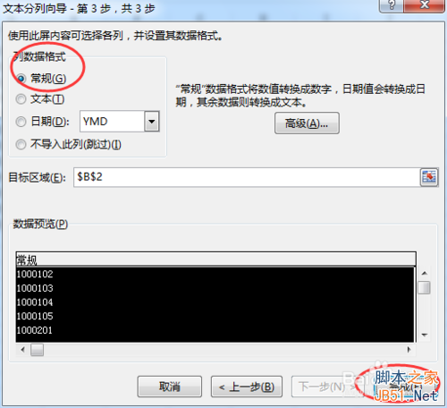 4、列数据格式选择“常规”,然后再点击“完成”,即可。