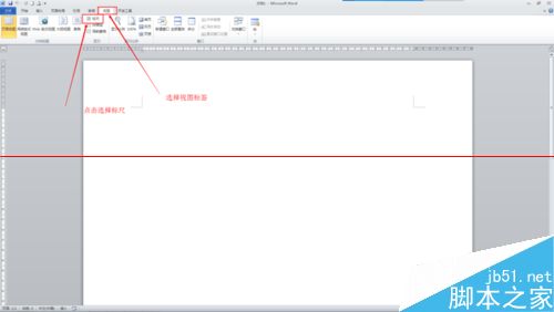 6、如果word运行过程中发现标尺和控制标尺的该图标同时消失,则通过标尺的控制菜单,调用标用。标尺的控制菜单位置:视图标签→标尺选择项。