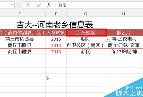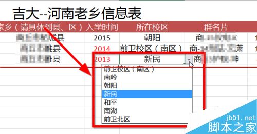 1、打开Excel软件,键入你需要的信息。我这里主要设置的是校区选项。