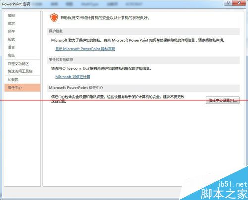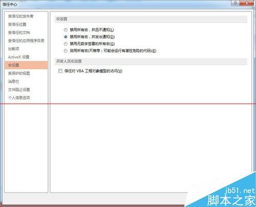 4、点击信任中心,点击信任中心设置,弹出信任中心设置界面