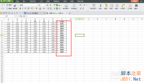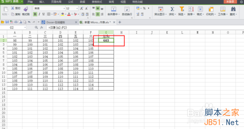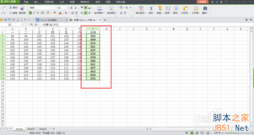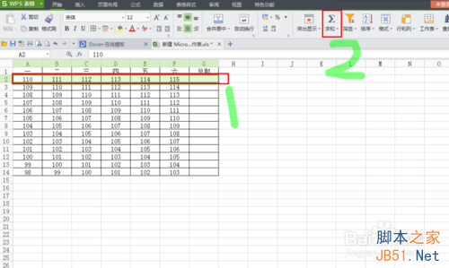 4、选中第一行,点击求和就会自动显示总和,如图所示。