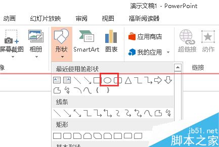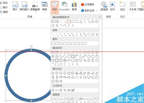1、首先我们打开PPT软件,在插入的地方,有一个形状,我们选择圆,然后按住shift,先话一个整的圆