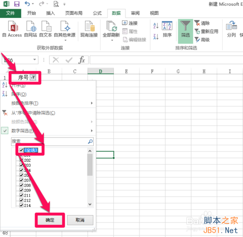 7、删除空白行后需要恢复之前的数据行。点击下三角标志,然后勾选“全选”,这样下面所有的数据都筛选上,点击“确定”。