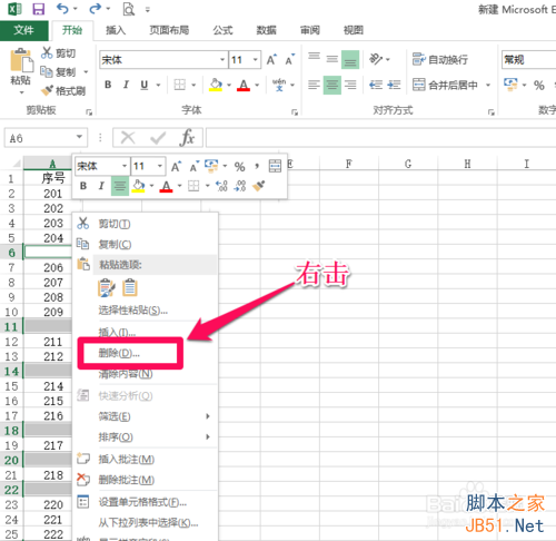 6、选中筛选出的空白行,然后右击,点击“删除行”。这样就可以将空白行删除掉。