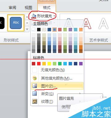 3、单击,‘形状填充’,下拉列表中选择‘图片’