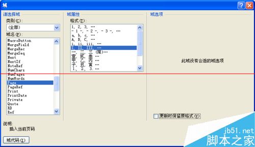 7、选择【page】选择,页码的格式。取消更新时保留原格式,确定