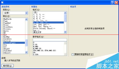 10、点击【sectionpages】选择,选择页码格式。取消更新时保留原格式,确定
