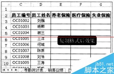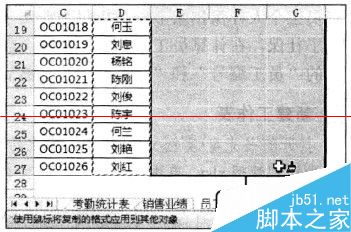 此时,指针呈刷子状,选择要应用格式的单元格区域,这里选择E2:G27单元格区域。