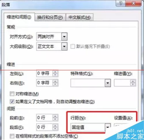 4、选中全部文字,进入“段落”设置,调节行距为“固定值17磅”。