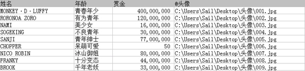 上面表格中头像那一栏,注意的是要在标题那前面加个@,这是代表路径的意思。下面内容分别是头像对应的位置路径。