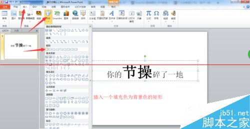3、现在,再插入一个填充色为背景色的矩形。大小在刚好遮挡住“重要”部分的下半即可。
