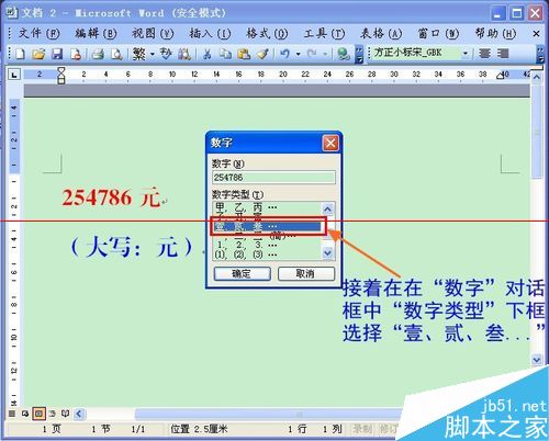 第五步:接着在在“数字”对话框中“数字类型”下框选择“壹、贰、叁...”