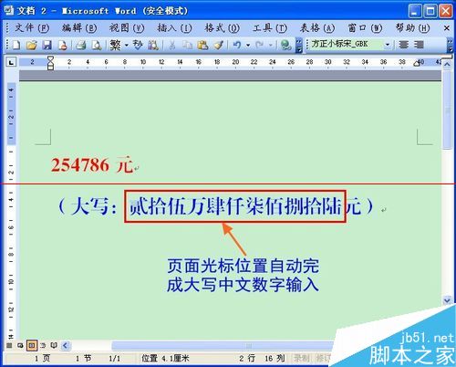 第七步:页面光标位置自动完成大写中文数字输入。