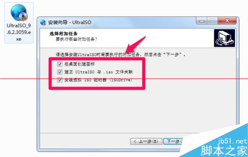 注意事项:安装软碟通时,要勾选“建立ultraISO与.iso文件关联”和“安装虚拟ISO驱动器(ISODriver)”两项。