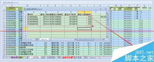 本经验根据某网友提出的实际问题,模拟示例而编写。主要要求是:根据某个条件(物料编码),在某个记录表中找到最后(最大、最近)的记录,并返回到单元格中。理论上讲:它是在一个表中(本例是sheet1),返回另外一个表中(入库明细)的某第符合条件的记录。并不是在表中筛选所能解决的。