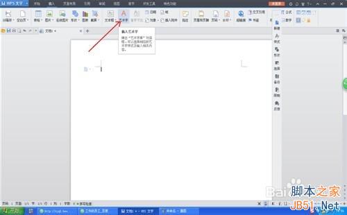 1、打开WPS ,单击菜单栏中的“插入艺术字”。