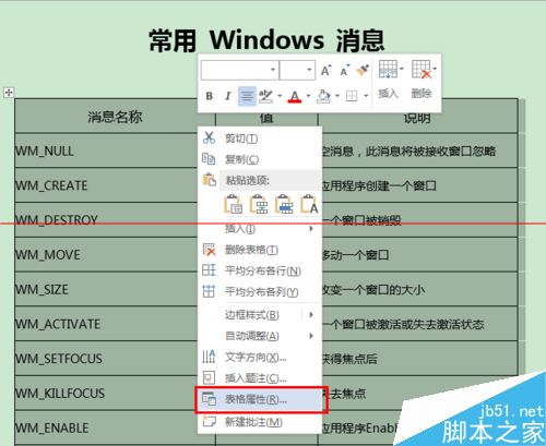 3、将鼠标移动到表格内右击,在弹出的右键菜单中点击“表格属性...”。