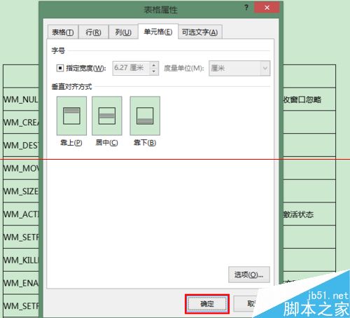 4、在弹出的“表格属性”窗口中切换到“单元格”选项卡,再点击“选项”按钮。