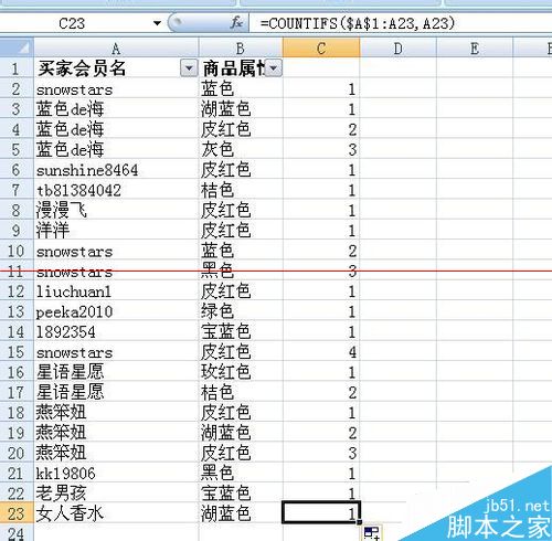 1、因为客户名称是有重复的,首先考虑按照客户名称出现的次数,给每次出现编码,如下图所示。此公式用到了countif函数,如不明白其含义,请自行查询;公式中用到了绝对引用,因为统计查询出现的次数是从第一次记录查询起的,故每次统计都要从a1开始,故有上述引用。注意,上述操作不能排序。