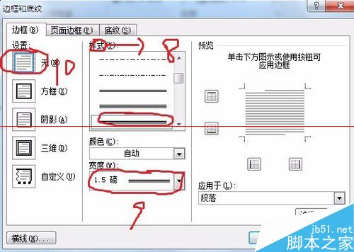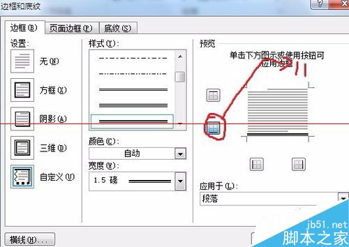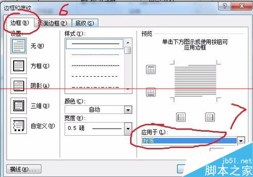 4、进入边框和底纹选项卡。选择,边框。在点击右下角应用于段落