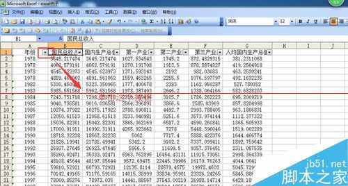 2、这时候我们可以看到标题行中就会出现筛选按钮,单击所需要筛选的内容所在的标题,如:年份