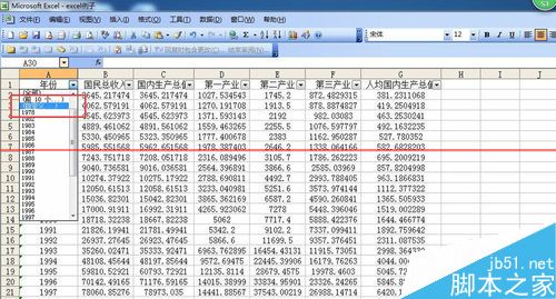 3、在打开的列表中,根据需要选择自己所需要筛选出来的数据,如1978