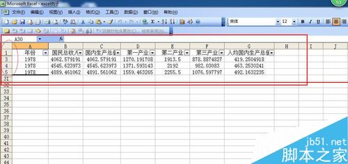 6、单击“确定”后,关闭对话框,返回工作表,就可以看到Excel表格中只对年份为1978年的数据进行显示。