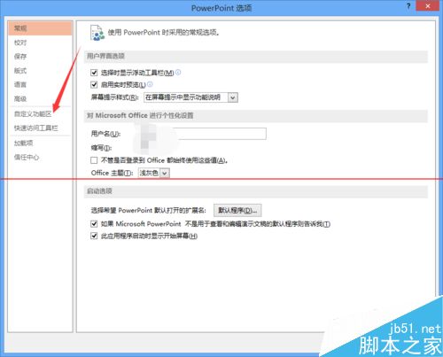 3、在弹出的对话框中选择【自定义功能区】选项,如下图: