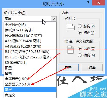 5、如果分辨率不能满足,如16:10的投影机,可以单击【自定义幻灯片大小】按钮,弹出以下对话框: