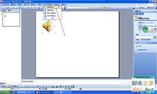 6、进行检测一下,播放幻灯片,单击小喇叭,就可以听到声音了。