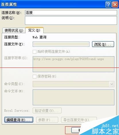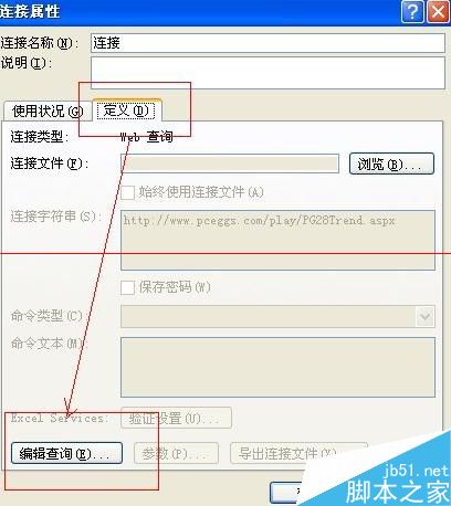 5、还是同一个对话框,在“定义”的下面,可以看到我们苦苦寻觅的“编辑查询”了,接下来就可以打开外部网站,导入想要导入的数据了;