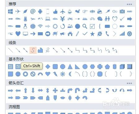 2、插入——形状——线条,里面有曲线,多边形以及自由曲线,这里选的是多边形,个人感觉。。自由曲线线条不太好控制。T T