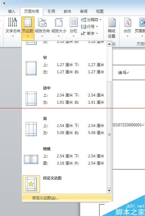 2、工具选项卡切换到【页面布局】,选择【自定义页边距】,如图。