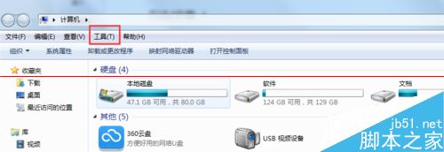 ①,打开电脑的“计算机”→点击“工具”下,→“文件夹选项”