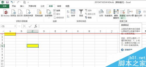 2、先选中C5,然后点击审阅标签下的“数据验证”