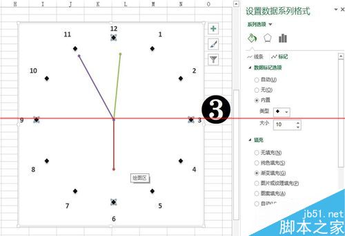 3)添加小时刻度的数据标签(自己往上填写1到12就可以了);