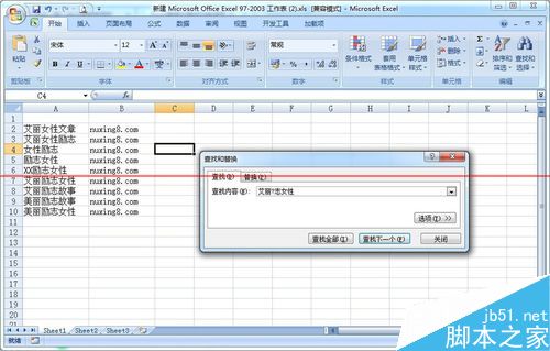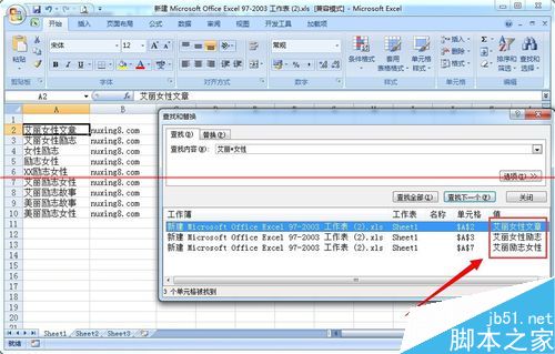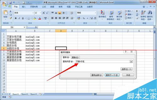 5、假如如果只忘记“励志”这个两字或多个字符时,可以用 问号“*"(表示任意个字符),就可以输入查找内容“艾丽*女性”,然后点击“查找全部”