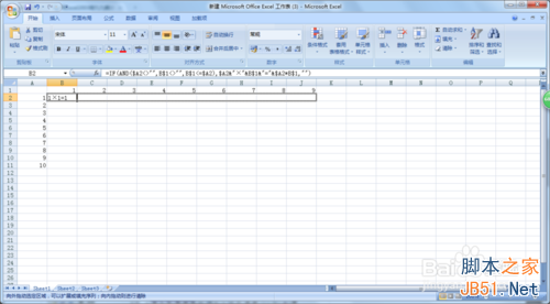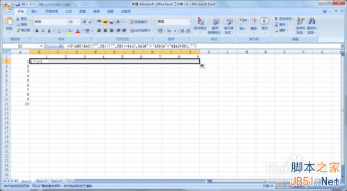 4、现在就在B2单元格中输入“ =IF(AND($A2<>"",B$1<>"",B$1<=$A2),$A2&"×"&B$1&"="&$A2*B$1,"") ”