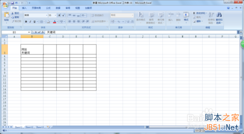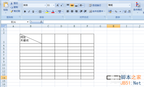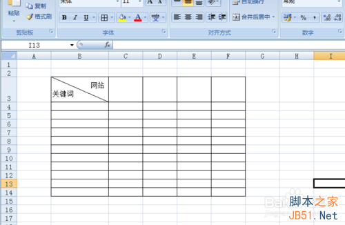 6、在单元格中输入斜线划分的文字标题,***注***要用“ Alt + 回车键 ”换行输入第二个,如:输入完“网站 ”,“ Alt + 回车键 ”换行,再写“关键词”