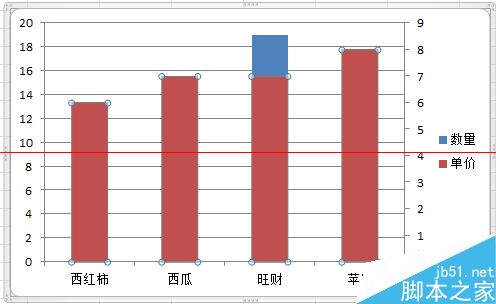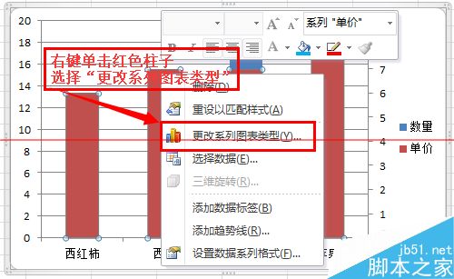 7、再次“右键单击红色柱子”→“更改系列图表类型”